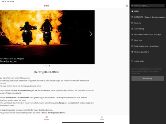 BIRD – das ist das Magazin rund um die rotweiße Markenwelt von STRAUSS. Was gibt es Neues im Workwear Valley? Wer steckt hinter der Marke mit dem Vogel? Und wie ist es eigentlich, für die Brand zu arbeiten? BIRD gibt exklusive Einblicke.In einem exklusiven Bereich der App können die rund 1.700 Strausse miteinander chatten, die aktuellsten News zum Unternehmen abonnieren, wichtige Informationen für den täglichen Arbeitsalltag erhalten sowie zahlreiche HR-Services nutzen.