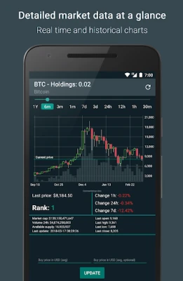 ✔SINGLE CRYPTOCURRENCY DETAILED INFO: Detailed coins views, for every coin you can see more advanced information such as live price charts, candlestick charts, market cap, volume, percent change, available supply and much more...