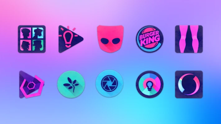 A dark and dreamy purple mix with blue, pink and teal. Hundreds of wallpapers included, with support for all popular launchers.