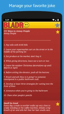 BlaDro: 10000+ funny jokes is an English joke app for you to laugh and entertain. There are jokes in different categories such as animal, at work, blond, tech, etc. Each joke is presented in a simple page to read. If you like the joke, you can save to favorite and share with friends.