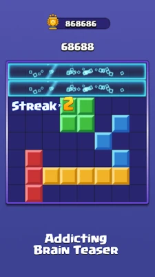 ● Intuitive Drag & Drop Gameplay: Place blocks strategically to complete full lines and clear the board.