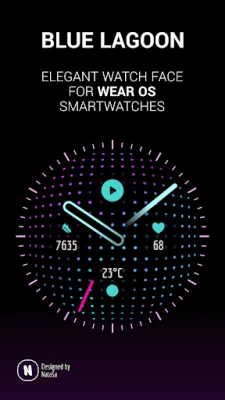 Blue Lagoon is a beautiful animated elegant evening watch face for Wear OS watches.