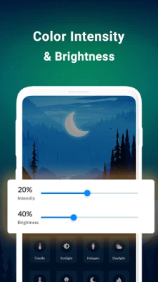 The Night Mode Blue Light Filter provides 8 blue light filters - Candle, Sunlight, Halogen, Daylight, Fluorescent, Incandescent, Dim and Ember. You can use one of 8 blue light filters to activate night mode or dark mode and warmlight for eye care against natural blue light rays. Relieve eye strain, macular degeneration, glaucoma and cataract with blue light night filter during sleepless night reading.