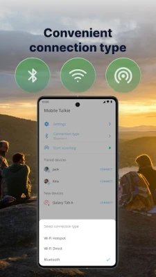Cihazınızı çok yönlü bir telsize dönüştüren Android uygulamamızla iletişiminizi geliştirin. İnternet bağlantısına ihtiyaç duymadan, Bluetooth veya Wi-Fi üzerinden sesli ve yazılı sohbetin keyfini çıkarın. Uygulama, zahmetsiz bağlantılar için otomatik Bluetooth eşleştirme özelliğine sahiptir. İki tür seçenekle görüşmelere katılın: hızlı mesajlar için bas ve basılı tut (PTT) veya uzun tartışmalar için tıkla-konuş. Çeşitli iletişim ihtiyaçları için mükemmel olan bu kullanıcı dostu telsiz uygulamasıyla zahmetsizce bağlantıda kalın. Çevrimdışı ses bağlantısının basitliğini yaşayın. Hemen indirin ve istediğiniz zaman, istediğiniz yerde bağlantıda kalın!