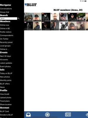 Upload photos direct from your device to your BLUF profile, share your location with other members, and update your profile text too. You can manage your BLUF account, take part in group chats, and use the app as a secure way to log in to the web site too.