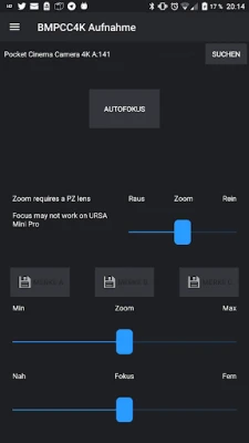 - Keine Möglichkeit per Bluetooth zu erkennen ob die Kamera-Formware noch Cinema-DNG unterstützt und ob Blackmagic Raw unterstützt wird