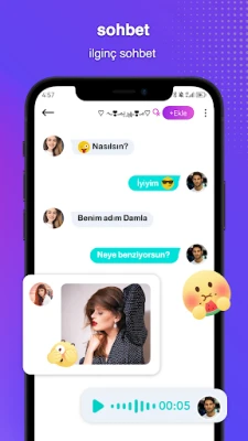 Bizimle mobil veri veya WIFI kullanarak istediğiniz zaman insanlarla çevrimiçi rastgele sesli sohbet edebilir, sevdiğiniz kişiyle tanışabilirsiniz. Facebook, Twitter, Instagram, Snapchat, Bigo Live, Tik Tok, Fella, Forfan, Sogo, Tango, Star Chat, Wafa, Hakuna, Weplay, Yalla gibi canlı yayın uygulamalarından veya diğer canlı sohbet programlarından da arkadaşlarınızı davet edebilirsiniz. Miku, Likee, Halame, TalkTalk, Sawa Ksa, YoHo, SoulChill, YOYO, Hiya, Ahlan, Hawa, BeeLive, Beela Chat, Uplive, Chamet, Hello Yo.