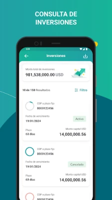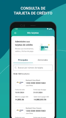 · Accesibilidad en Tiempo Real: Consulte sus saldos, movimientos y detalle de movimientos de sus cuentas, cheques, tarjetas de crédito, créditos e inversiones desde cualquier lugar y en cualquier momento.