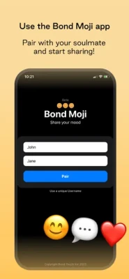 Bond Moji - the Bond Touch app that lets you communicate your feelings and connections through a delightful collection of emojis! Express your emotions effortlessly with our cutting-edge app! No more typing out lengthy texts to explain how you’re feeling.Whether you’re feeling happy, sad or excited, our three expressive emojis make sharing your mood a breeze. Connect with friends and family in a whole new way - no words needed! Let your emotions do the talking and brighten someone’s day with just a Moji!! Download now and bring your feelings to life!