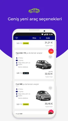 ✔ Her sınıftan araçlar: mini, ekonomik, standart, iş, üstü açılır, steyşın, minivan, ve lüx.