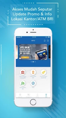 4). Menu Info a. Lokasi Kantor Cabang BRI b. Lokasi ATM BRI c. Promosi Kartu Kredit BRI d. Sosial Media BRI e. FAQ