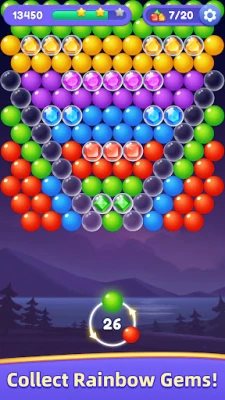 Enjoy hours of fun by matching lines of the same color bubbles and solving fresh bubble puzzles. You will match 3 to pop all the colorful bubbles, collect exquisite rainbow gems, and help an adorable PanPan find his family in this strategic bubble-shooting puzzle adventure.