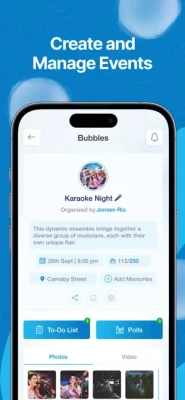 Bubbles is more than a social media platform; it's your personal space to organize events, create cherished memories, and relive those special moments exactly as they unfolded.