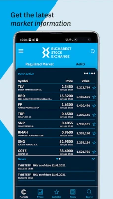 BVB app - will provide you with up to date information, prices and news from the Bucharest Stock Exchange (Bursa de Valori Bucuresti)