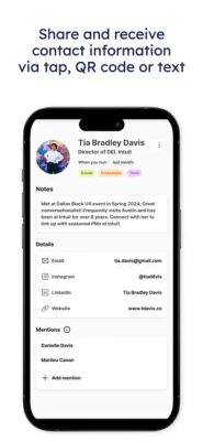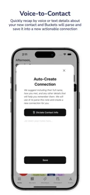 Control the data you share by picking and choosing just the social and contact information you feel comfortable sharing with a new friend. They can quickly "share back" the same or different info and you both can see when and where you've met, in case you forget their name after a long night of networking and meeting new people. Tag new friends with categorical and informative "Bucket tags" for later recall so you can quickly find the investor you need to follow up with, the classmate you wanted to share that podcast with or that potential new friend you wanted to grab drinks with. Automate reaching out with our Workflows feature which allows you to have AI summarize your notes on a connection and draft an email to them on a recurring cadence. Buckets ensures you don't just gather information, but you leverage it, to see your career, social or love opportunities to their fullest potential.