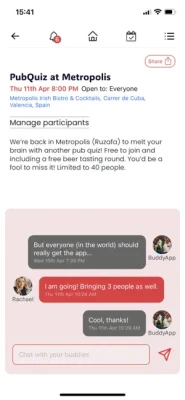 If you have a plan, share it here and allow others to join you. Or, if you find yourself at a loose end, see what others are doing near you and join them. BuddyApp is a new app designed to help you make plans, meet up with existing friends and make new connections in a straightforward way.