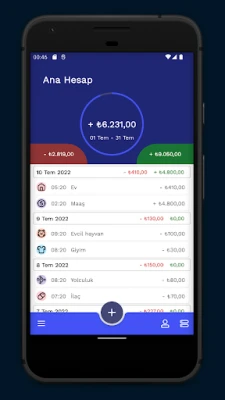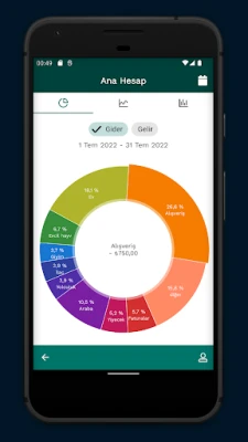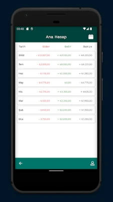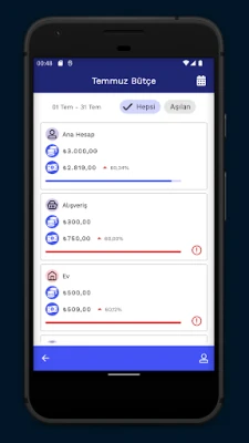 Uygulama otomatik olarak cari bakiyeyi oluşturacak ve harcama modellerinizi (giderler ve gelirler) gösteren resimli bir diyagram oluşturacaktır, ana ekranda kırmızıya dönerse hesap bütçenizin ilerleme durumunu görebilirsiniz, bu bütçenizi aştığınız anlamına gelir;
