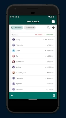 Hesap bütçelerinizi ve kategori&alt kategori bütçelerinizi çok detaylı takip edebilirsiniz. Para yöneticisi uygulaması, bir kategori bütçesini her aştığınızda sizi uyaracaktır.