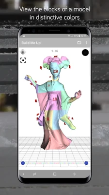 This is Matinmat.com app to help customers figuring out how to assemble all the pieces present in their projects made of sheets of foam. The original model has been split into a collection of numbered blocks, a 3D view of the blocks is the standard view. Each block appears of a different color and numbers appear over each block. The user can later press on one of the blocks to get the detail of the pieces that need to be stacked to create that particular block. The block-building view is just 2D.