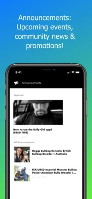 The Bully Girl app also has an Announcements section, where we will be keeping our community informed of upcoming dog shows and events, as well as dog and puppy care products, supplements and nutrition information.