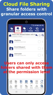 (3) DriveHQ, ayrıntılı kullanıcı erişim kontrolüyle gelişmiş klasör paylaşımını destekler.