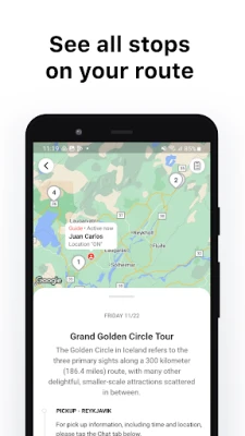 » Chat with our customer support team. » Receive up-to-the-minute itinerary notifications. » See descriptions and photos of all stops on your route. » Book your next BusTravel Iceland tour!