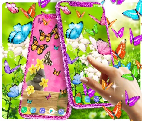 The wallpapers in this fantasy world represents a green field where all the beautiful plants grow. Our colored butterflies found their home in this splendid view and they became friends and so the story of the live wallpaper begins. All the butterflies are 3D and they look beautiful on every android phone screen. You will find different colors of butterflies like pink, blue or orange as animation and 30 hd static butterflies backgrounds.