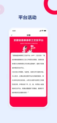 C位交友旨在为单身职工提供专业化的交友服务,举办多样化的交友活动,以专属性、私密性、信息化作为服务宗旨,并将不定期开展线上婚恋专题讲座、培训和心理辅导咨询,帮助会员树立正确的婚恋观、择偶观,从而帮助在职员工提高婚恋成功率,努力打造成为安徽省最真实可信的交友服务系统!
