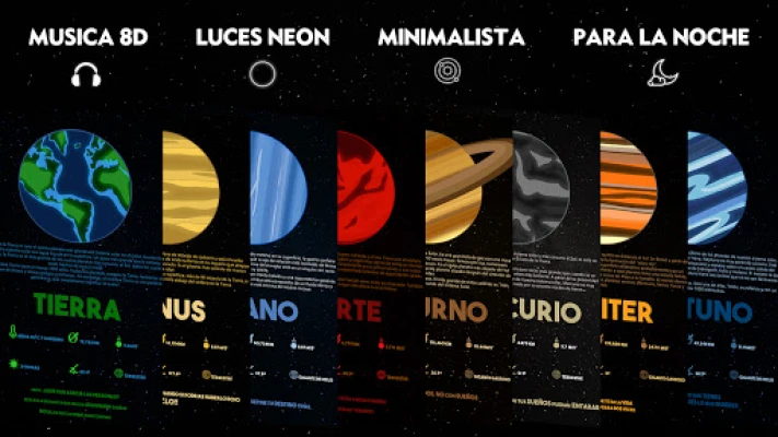 -Música 8D -Estilo minimalista -Planetas Neón -Cambiara tu noche -Perfecto para la noche