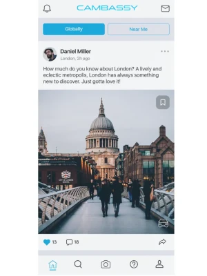 What is Cambassy?Cambassy is a social travel app that allows you to view places in the eyes of people from your country (Cambassadors), helping you to view a unique content.