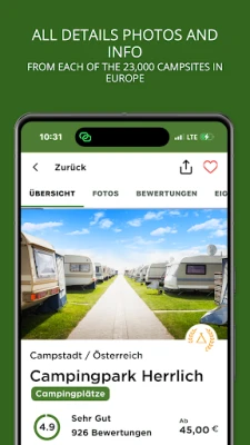 Over 300,000 authentic guest reviews show you what other campers experienced on the campsites. You can also share your own experiences, post pictures and give reviews – directly in the app!