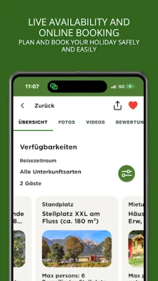 Simply enter your travel period in the app and view available campsites that might interest you. This saves you a lot of phone calls and waiting for answers ... and when you have found a suitable campsite, you can secure it immediately and book it easily online.
