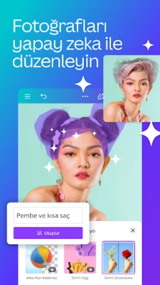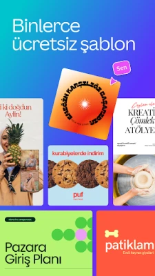 Canva, sunum, sosyal medya, CV, logo, broşür, kartvizit, poster ve tüm diğer görsellerinizi kolay şablonlar üzerinden oluşturabileceğiniz, dahası fotoğraf ve video düzenleyebileceğiniz, ücretsiz bir sanat ve tasarım görsel iletişim uygulamasıdır. Güvenebileceğiniz çok yönlü bir video ve fotoğraf düzenleyici.