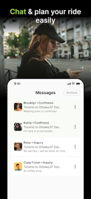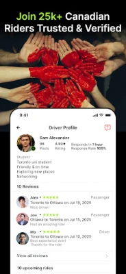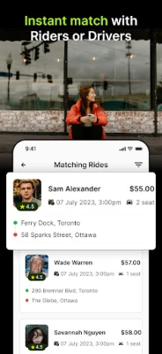 Drivers: Post your ride in 30 seconds. Set your price, review rider profiles, and accept requests.
