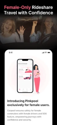 Pinkpool: A dedicated pink interface for women-led carpooling.
