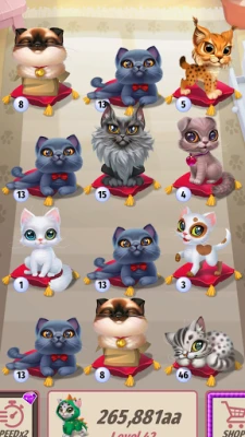 Choose which furniture🧐 to buy for you loved cats and get upgrades for that😲 , so you can merge even faster 👀 and buy more furniture 🙀 and more rooms 🙀 and more cats 🙀.