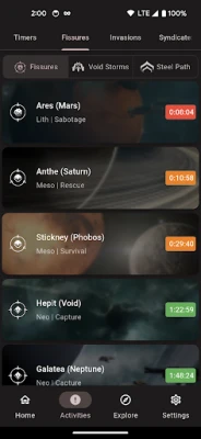 Stay ahead of the game with targeted alerts for exactly what you need. Whether you're hunting specific resources, monitoring timers, or searching for particular fissure missions, Navis keeps you covered.