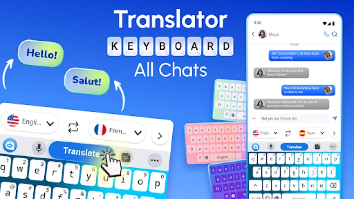 Sohbetleri klavyenizden hızlı bir şekilde çevirmek için Klavye Tercümanı. Tüm diller için doğru klavye tercümanı ile klavyeden çeviri yapın. Konuşmadan ayrılmadan çeviri yapın, klavyede çeviri yapmak için sohbet çevirmeni klavyesini kullanın. Herhangi bir dildeki mesajları anlayın ve yanıtlayın; klavye tercümanı, sohbetleri başka bir çeviri uygulamasına geçmeden çevirmenize yardımcı olur.