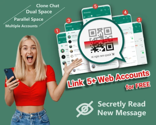 Elevate your chat experience with dual chat and many other features. The QR code scanner & generator allows you to scan and create QR code providing you with the best experience for QR scanning. Never miss out any status update of your contacts, you can download and save any status and share it with others. With the Direct Chat feature, say goodbye to the hassle of saving contact numbers, you can send messages and chat with anyone without saving their number to the contacts.