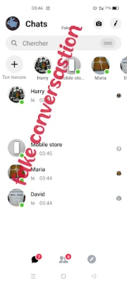 chat prank can be used to: •Create chat memes and jokes •Talk with your imaginary friends •Prank your friends •Endless fun *Unlimited messages *Stickers Available *Simple to use *You can edit every detail. *One-click chat Screenshot *Minimal storage usage *Easy to use interface