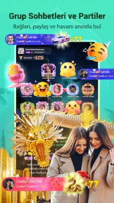 Canlı sesli odalara katıl veya kendi odanı kur. Müzik partilerinden gece sohbetlerine, insanları bir araya getiren odalarda kendi tarzını bul.