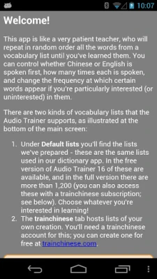 ★ You can also download word lists from your personal trainchinese account and receive words for audio training from the trainchinese Dictionary and Flash cards application for Android.