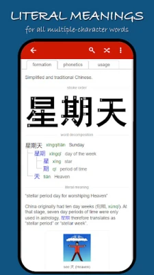The app uniquely deconstructs Chinese characters and words down to their simplest components, providing a clear link between each component, with memory aids provided for every word and character.