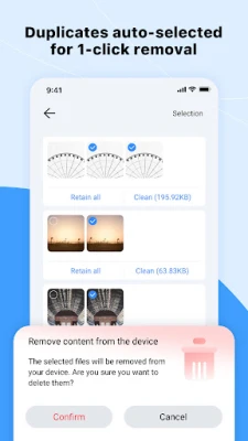 With this duplicate remover app, you can quickly find duplicate files and effortlessly clean them up on a regular basis to clear space on your device and make room for new files.