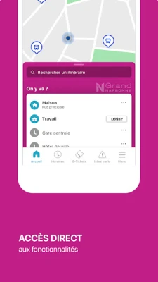 - Enregistrement de destinations favorites (travail, domicile, salle de sport…), stations et gares en 1 clic