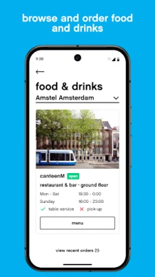 • Browse food and drink menus