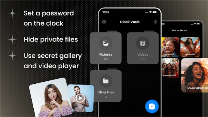 If you want to hide photos, guard sensitive documents, or keep private notes and contacts safe, Clock Vault-Hide Photos Videos is the solution for you. Hide pictures from the gallery and manage all your important data, including hiding files and folders, ensuring that the information you need remains perfectly safe in this vault app hider. Take control of your data today with the ultimate privacy app.