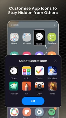 Initial Password Setup: After successfully installing the app, you will be prompted through a clock-style interface to enter the primary password twice for verification. This serves as the master key that unlocks all private data in the app.