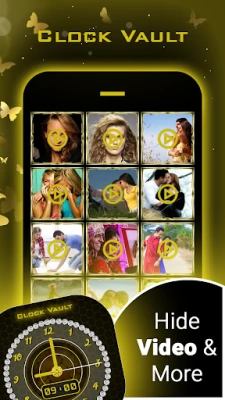 Hide Photos, Video Locker app & photo hider Gallery Vault app that lets you hide pictures and personal picture lock and photo hider albums or secret videos behind secret clock. clock vault look like simple clock with the naked eye but has a secret gallery vault behind it.