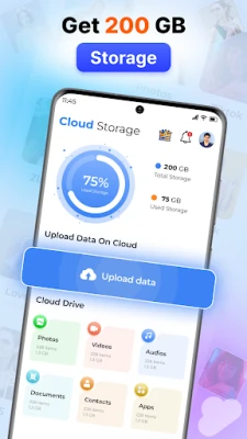 With Cloud storage, you can safely back up your images, videos, documents, audio files, and contacts & access them anytime, anywhere. This is the app for users who want to free up space, secure their data, and enjoy a smooth backup and restore experience.